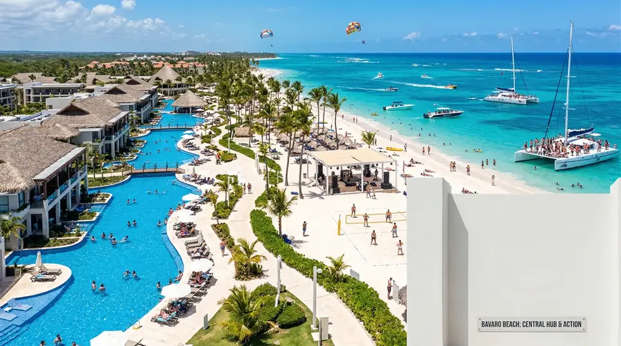 Start in Bávaro Beach, the main tourism hub of Punta Cana. This area offers calm water, resort access, and the highest activity density.
